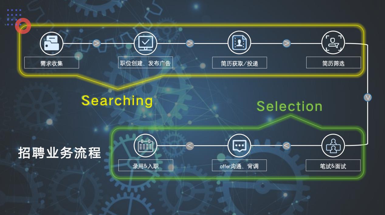 前面几步可以归纳为“Searching”部分,因为HR主要在做的,是搜索候选人;而后面三步是“Selection”部分,也就是如何甄选,并最终确定合适的候选人。