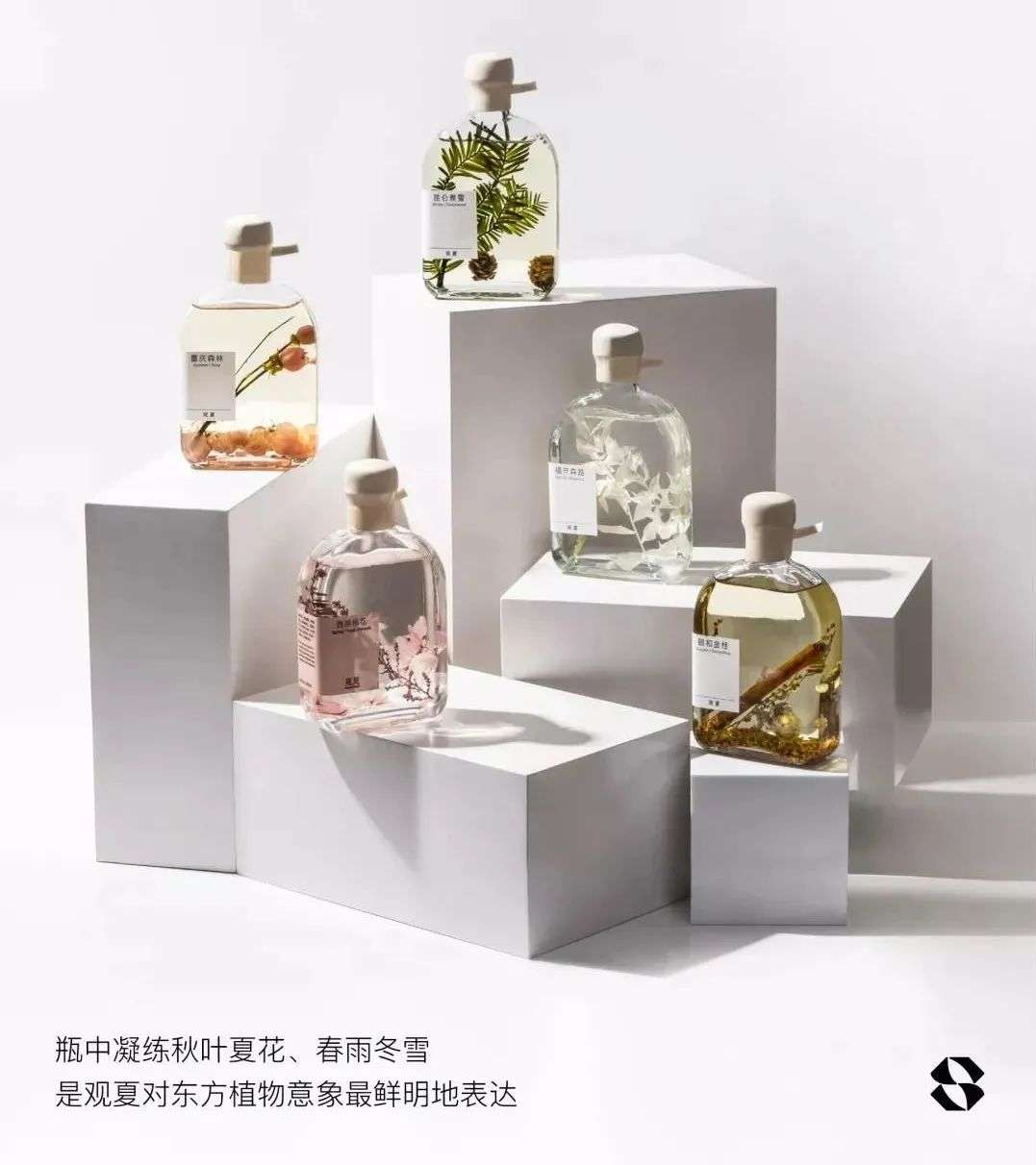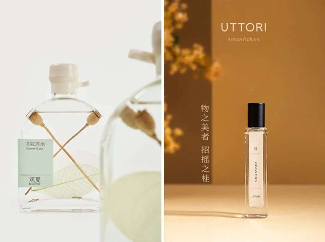 除了怀旧复古,基于传统文化与东方审美,也有许多可延展的空间。比如主打东方植物香调的观夏,传递的是一种“东方新摩登美学”;而Uttori五朵里则通过桂、梅、兰等东方元素诠释香水中的国风。