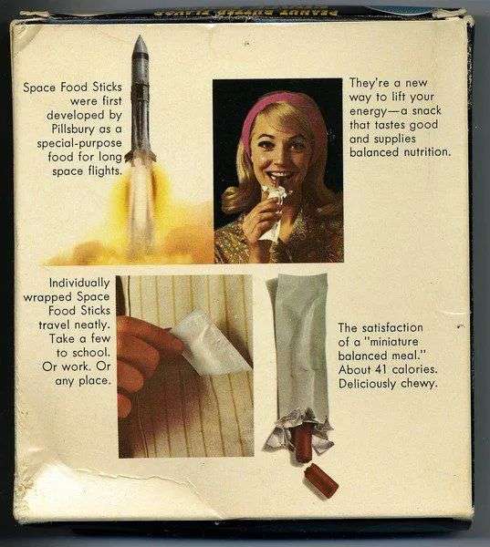 随着食品、包装技术发展,1960年美国Pillsbury公司研发出首款棒状代餐「太空食物棒」(Space FoodStick),能够及时补充宇航员所需蛋白质、碳水以及维生素,以焦糖、巧克力、麦芽等高热量食材为基底。
