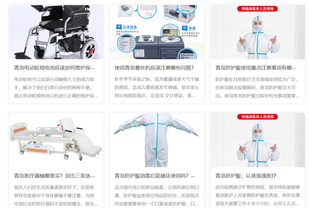 除此之外,网站的简约浅色设计风格为了契合医疗器械所给人带来明亮、干净、健康的感觉。因此可以看到,无论是网站整体版面,还是产品展示图、文章封面图,都以白色为底板,其作用就是为了强化“医疗器械”的视觉力。