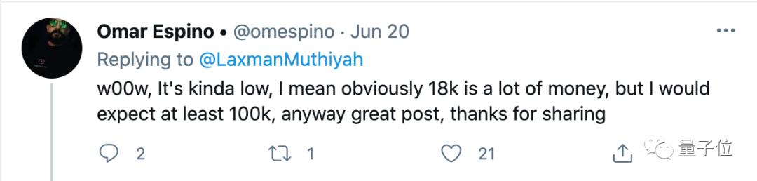 虽然1.8w也很多了,但是我认为他的工作至少值得10w美元。
