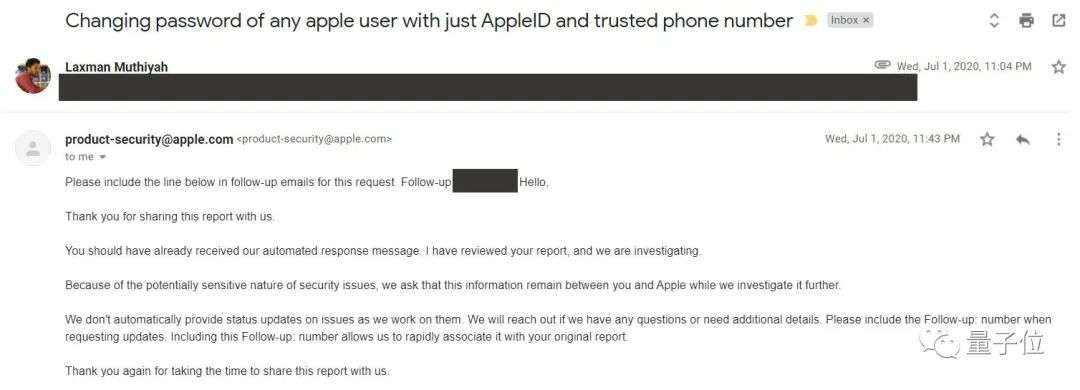 而且,当他想再和苹果安全团队沟通这个问题时,所有的邮件都石沉大海了。