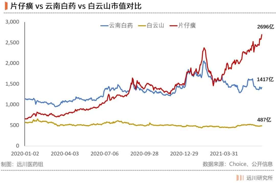 中药的品种繁多,虽然坚持做到今天的老字号不多了,但A股上仍然有两家市值超千亿的中药公司:一是云南白药,二就是片仔癀。排在第3位的广州白云山尽管有板蓝根的加持,市值却仅为片仔癀的三分之一。
