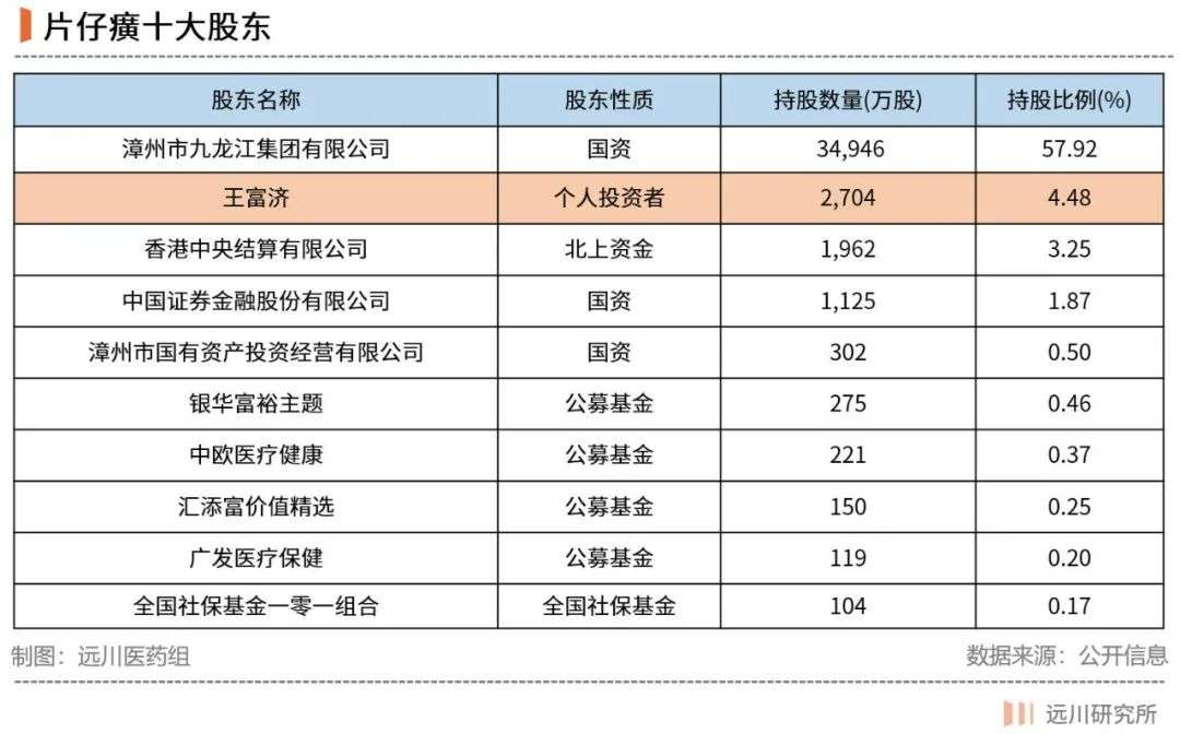 林园的真真假假外人看不清楚,但在片仔癀的股东名单上,有一个24K纯正的长期持有者——第二大股东、超级牛散王富济。