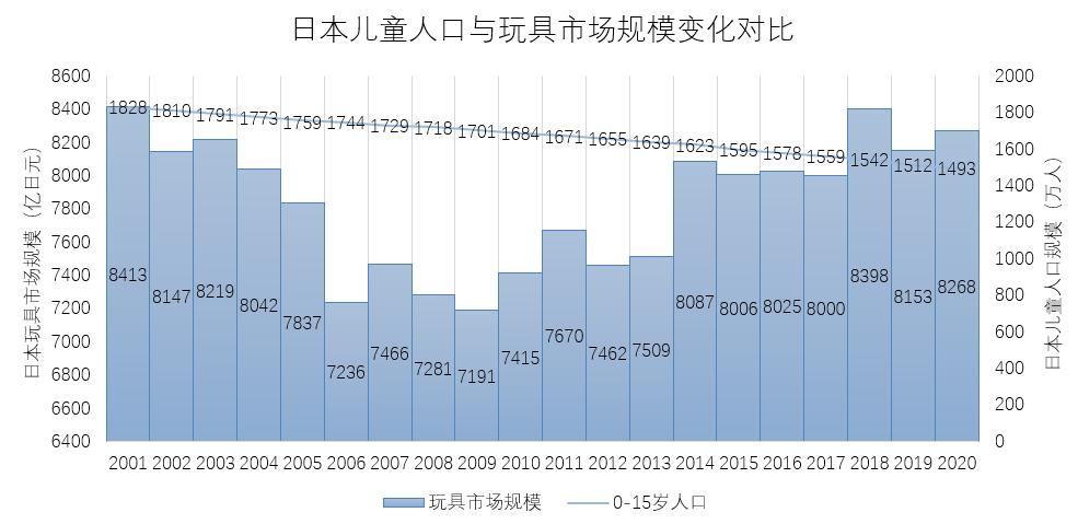 需求侧层面看,老龄化和少子化导致日本内需消费日渐低迷,直接现象是玩具店的倒闭。2006年~2013年,日本玩具市场跌入低谷,直到2014年后才反弹攀升,保持在8000亿水平。