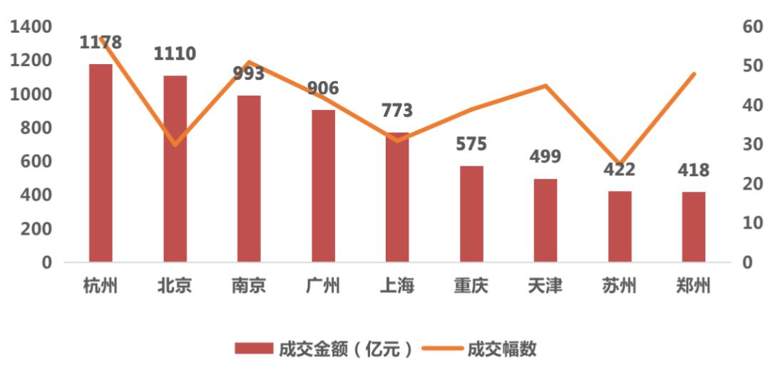 图:首轮集中供地成交金额超过400亿的城市