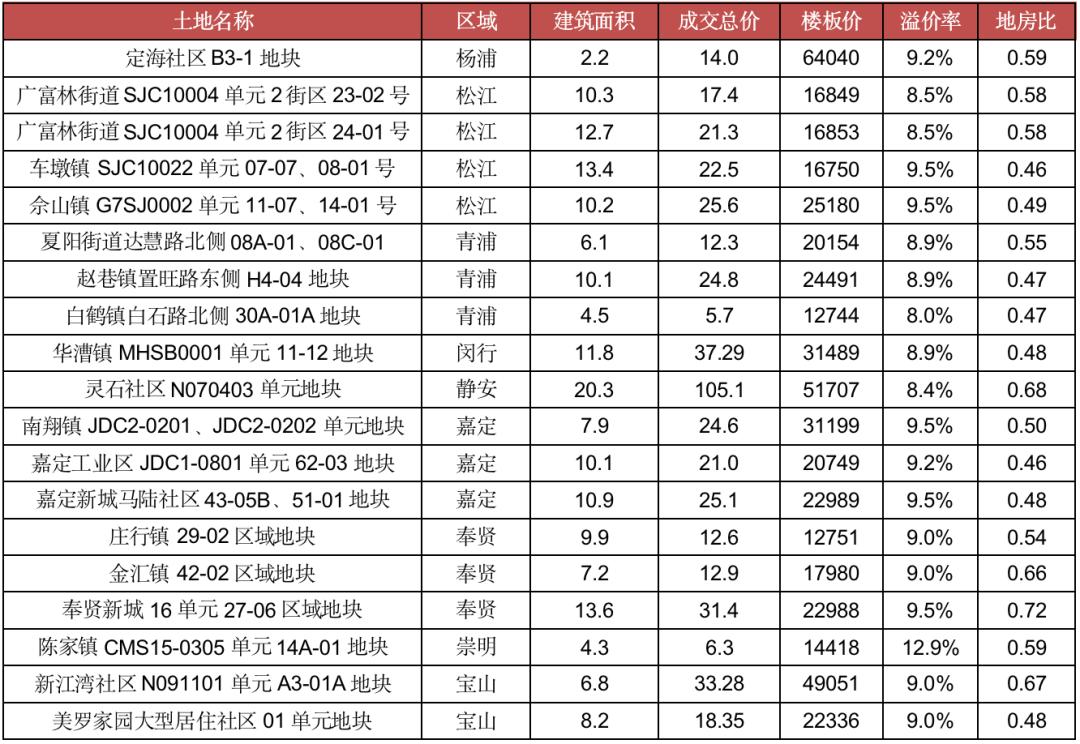 表:上海首轮集中供地中典型地块地房比
