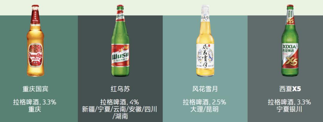 重组之后,重庆啤酒旗下本地品牌包括重庆、山城、乌苏、风花雪月、西夏、大理、京A;国际品牌包括嘉士伯、乐堡、凯旋1664、格林堡、布鲁克林和夏日纷,形成“本地品牌+国际品牌”品牌组合,众多并购品牌也都保持继续运营。