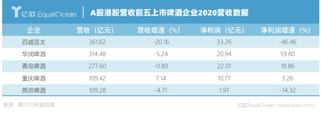据啤酒企业2020年报,重庆啤酒是五大巨头中唯一一家销量、营收和利润都实现增长的企业。