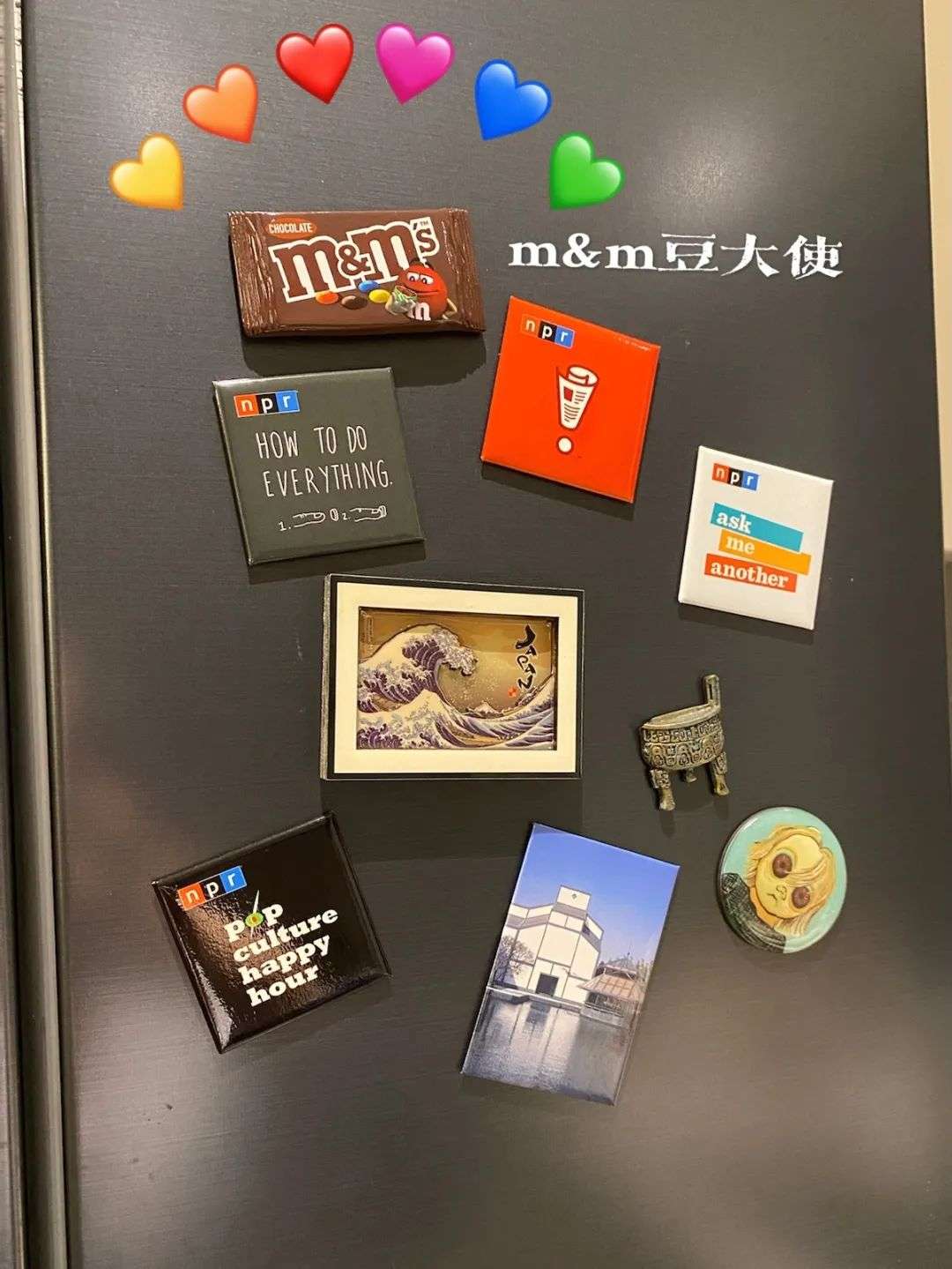 和远道而来的朋友一起去逛M&M店,里面东西都好可爱,但是都好贵,看来看去只买了一套水果叉(安慰自己性价比还可以)。回到家以后朋友从包里拿出一个M&M冰箱贴「啪」贴到我的冰箱上:「送给抠门雅雅。」哇,我的朋友是个善良的魔法师吧!