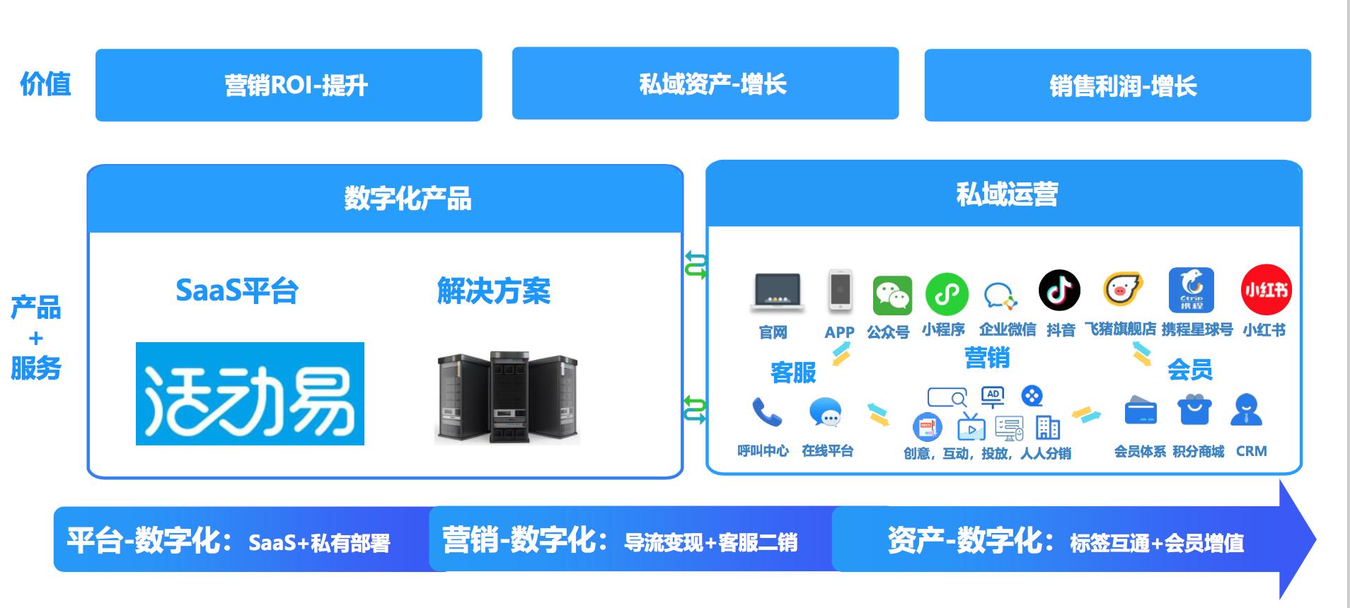 新的私域时代来临,面对以携程和美团为主的传统旅游销售时代,多家文旅集团以往“过度依赖OTA分销、会员数据少、营销成本难、营销运营难”的痛点越加突出,「活动时」正是抓住了私域的市场机遇和集团客户的痛点,提供了私域营销一站式服务:SaaS平台、私域代运营、定制化解决方案,这三块的营收占比分别为2:5:3。