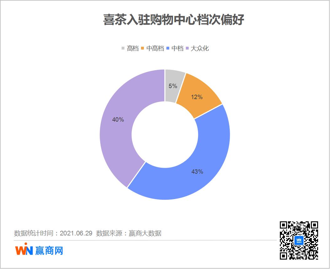 而同在高端现制茶饮赛道的喜茶,在创立之初就深深烙印下品牌创始人聂云宸对产品品质的执着,专注于产品的研发和创新,首创芝士现泡茶。从江边里的一家茶饮小店,逐渐进驻全国中高端商圈,据赢商网大数据监测,喜茶在全国进驻的商圈中,中高端商圈占比已达60%。根据喜茶官网显示,目前门店也已超过800家。