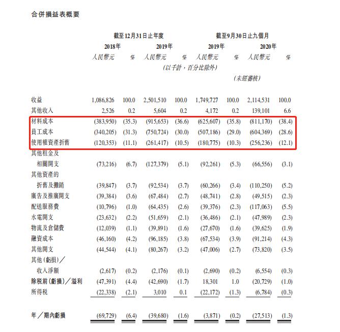 ◎ 奈雪的茶成本构成,图片来源:奈雪的茶招股书