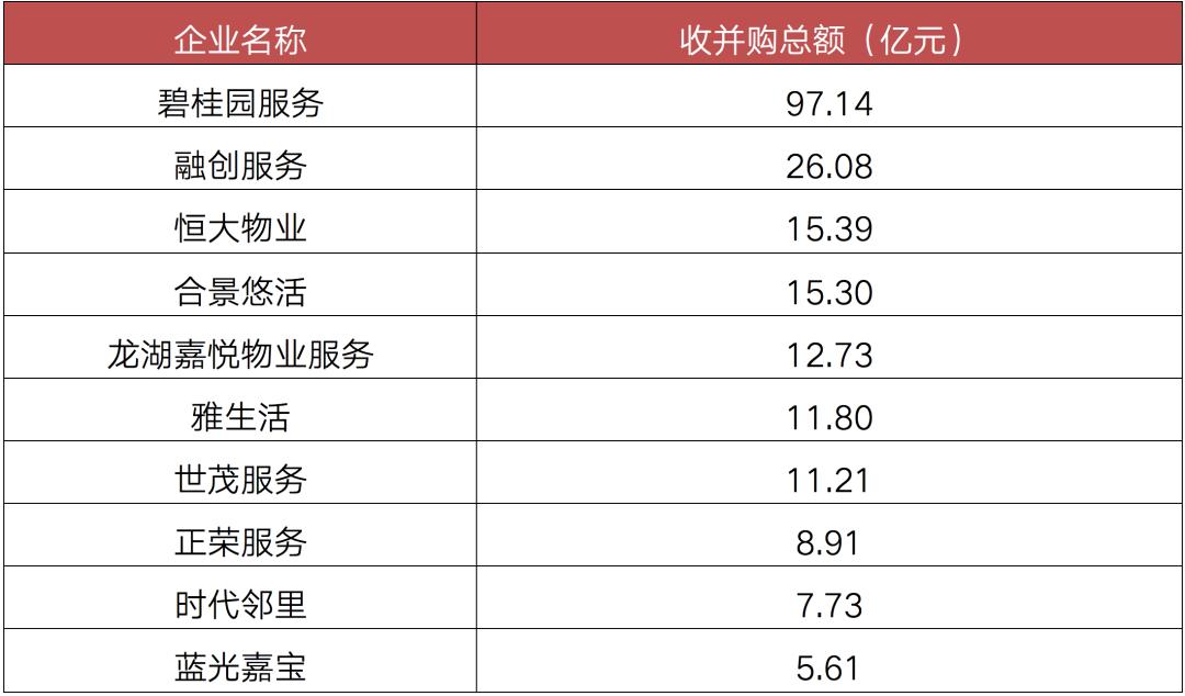 表:2020年至今物管企业收并购总额TOP10