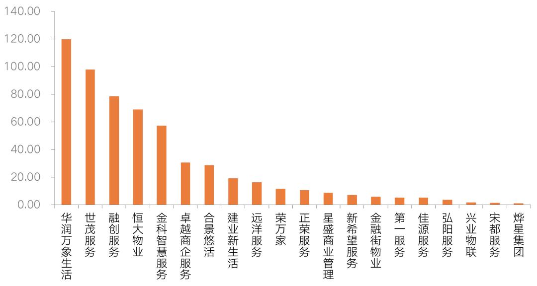 2020年以来,新登陆港交所的物业服务企业达到21家,当中包括恒大物业、融创服务、世茂服务以及华润万象生活等规模较大的物企,这些企业的IPO所得净额都超过了60亿港元,其中华润万象生活更是超过了120亿港元。