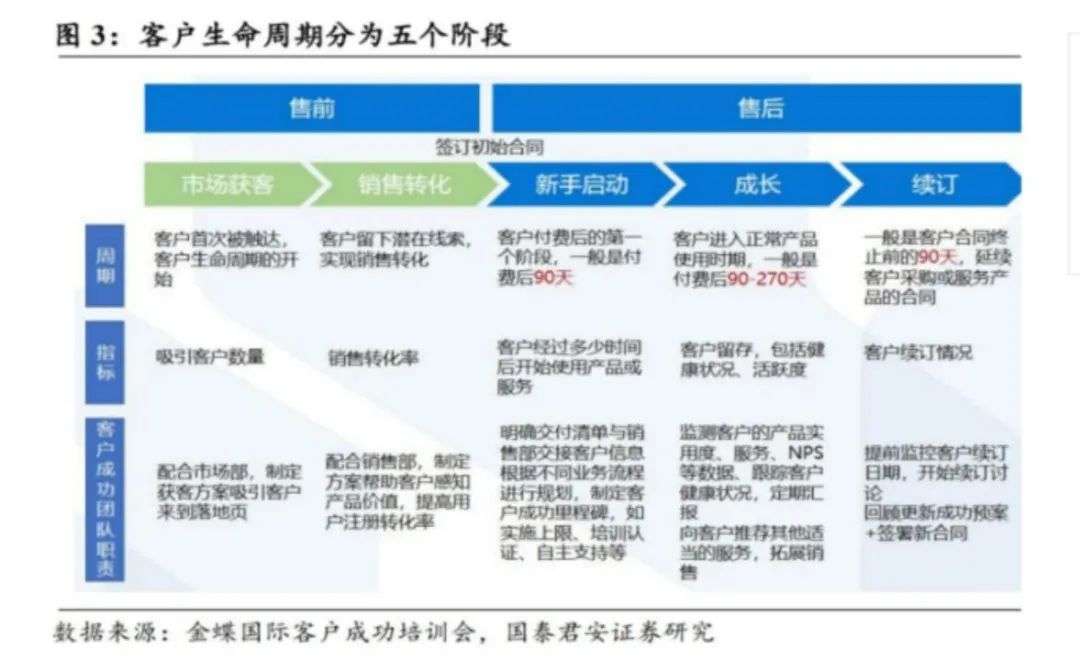通常情况下,SaaS公司会按照客户生命周期,专项配备售前、售后两支团队,为客户全程服务。