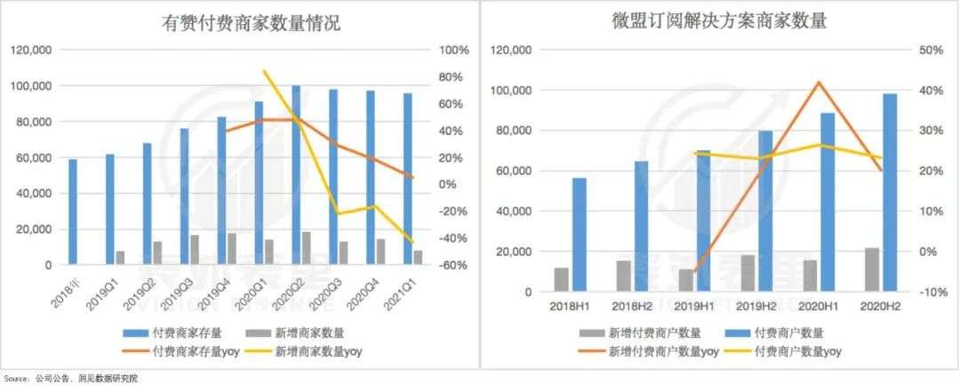 ·据有赞2021Q1电话会议:2020年商家流失的原因之一,疫情期间新签的中小商家,尤其是一些微商城基础版商家,续签率比较低。