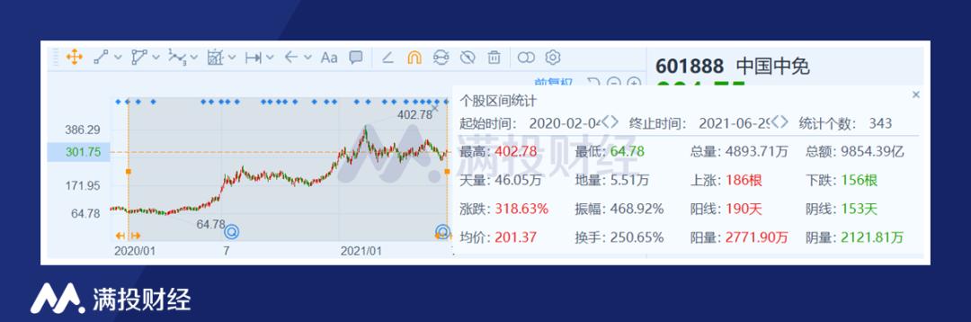 因此,尽管疫情对于旅游业来说是毁灭性的打击,中国中免凭借着多张免税牌照在A股市场的表现可圈可点,2020年2月至今涨幅为300%以上,股价一度突破400元。