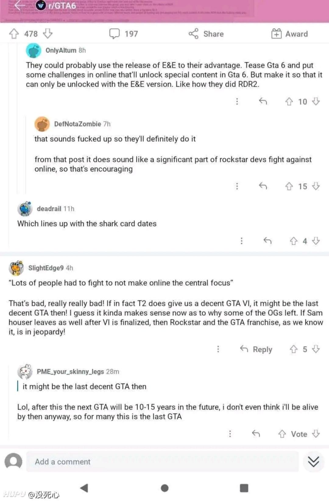 比如《GTA5》已经是2013年的游戏,而8年过去了,《GTA6》的开发进度一点声响都没有,不久前,一位《GTA》系列开发开发商R星的员工在论坛上爆料了公司迟迟不公布《GTA6》的原因:R星的母公司T2对于《GTA6》的产品定位与R星有严重分歧,R星想将更多元素放在线下单人剧情部分,而T2则希望《GTA6》的重心放在多人模式上。