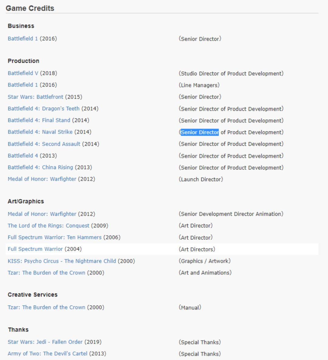 Scott Warner参与制作游戏一览,不乏许多名垂青史的作品
