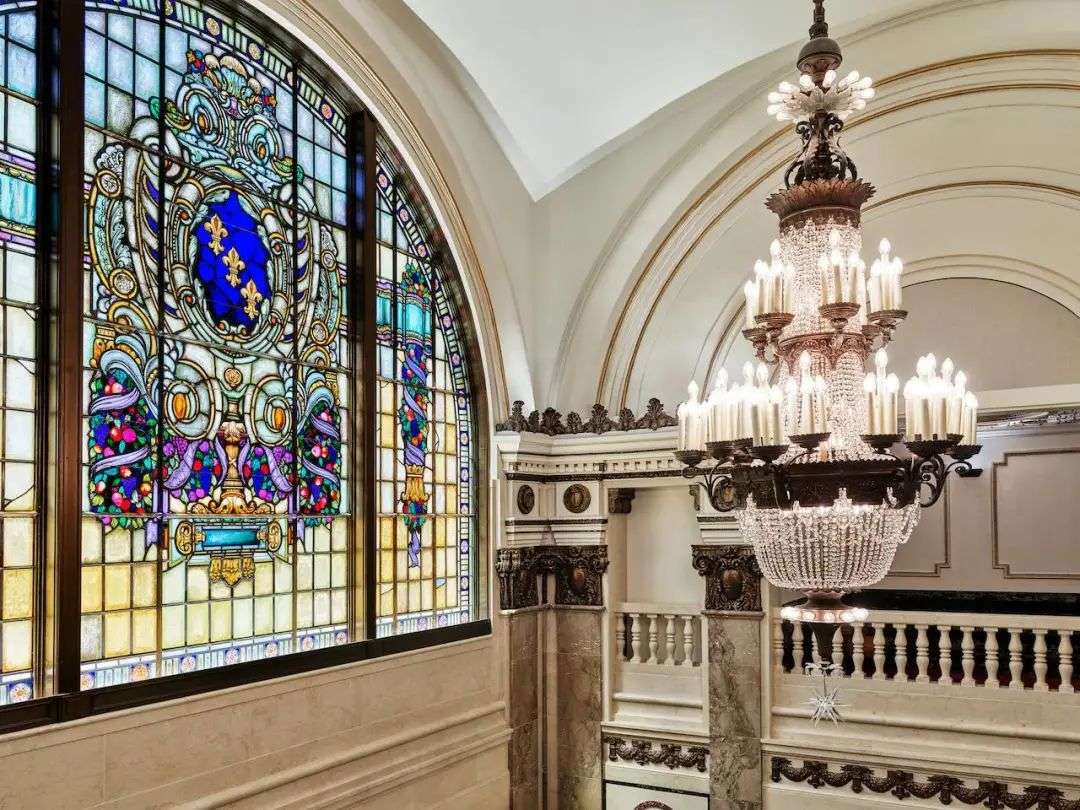 在大厅游走时,随处可见那些华丽的拱形阶梯、柯林斯式大理石栏杆,还有古老的铜质扶手。