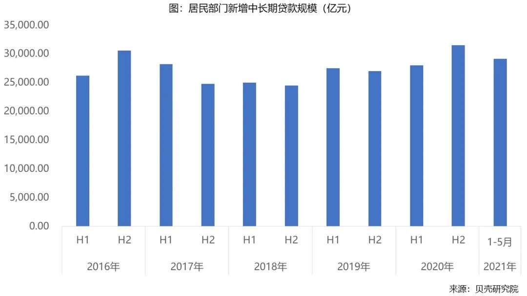 2020年全年居民部门新增中长期贷款约6万亿,如果考虑信贷规模与名义经济增长速度相匹配,预计今年居民部门新增中长期贷款增长6%-8%,大概有6.4-6.5万亿左右的额度,去掉上半年3万亿左右的已使用额度,下半年还将有超过3万亿左右的信贷额度。即使今年居民部门新增中长期贷款额度与去年持平,那下半年也有2.8万亿-3万亿的居民新增中长期贷款。