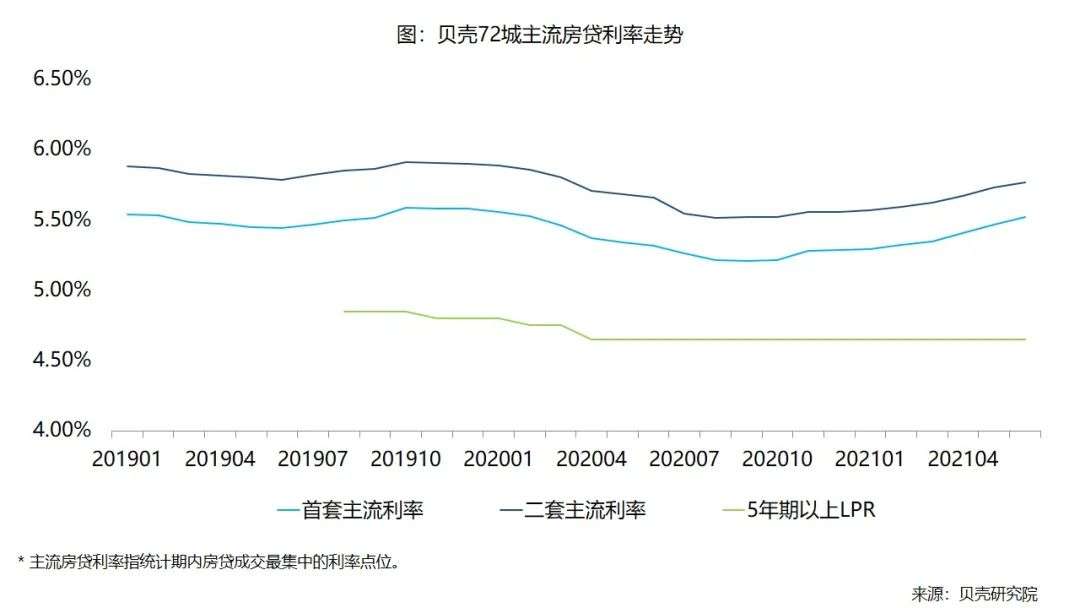 由于一季度使用了较大额度的信贷资源,到了半年考核时期,部分银行主动调整信贷投放速度,导致二季度部分城市出现了额度紧张的情况,市场端出现房贷利率提升、放款周期拉长等情况。6月份,贝壳研究院监测的72城主流首套房贷利率为5.52%,二套利率为5.77%,比5月分别上浮5个、4个基点;6月72个重点城市平均放款周期延长至50天。分季度看,二季度首套、二套房贷利率分别累计上涨17、15个基点,加息幅度超过一季度。合肥、杭州、成都等前期市场较热的城市,上半年信贷额度投放较多,为迎接半年考核,部分银行阶段性减少或暂停发放个人按揭贷款。