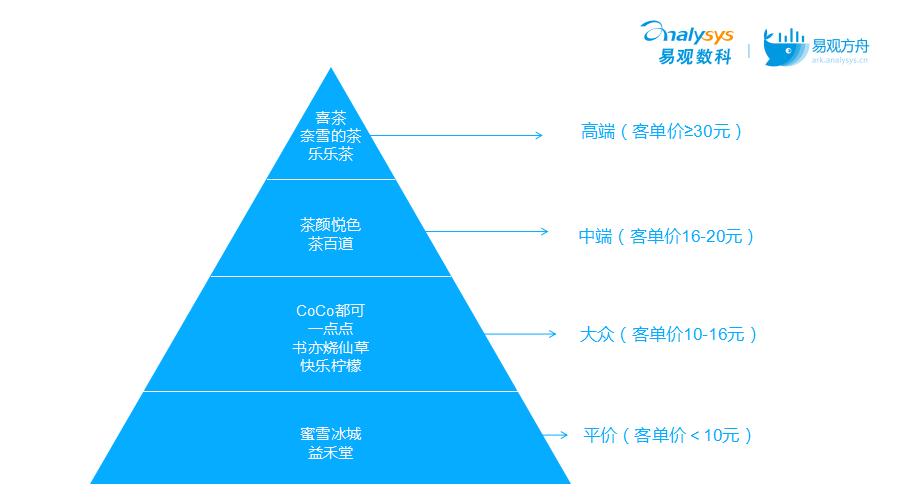 - 大众茶饮:客单价在10-16元的CoCo都可、一点点、书亦烧仙草、快乐柠檬等;