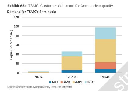 ▲2022-2024年,台积电3nm芯片市场需求预测