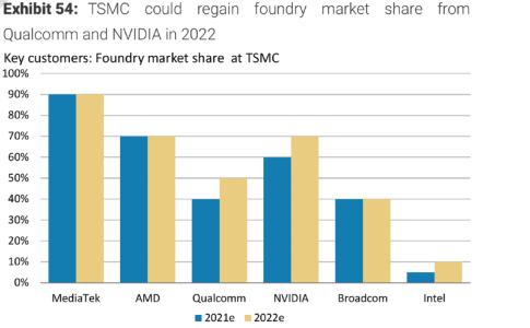 ▲2021-2022年,台积电重要客户的业务占比预测