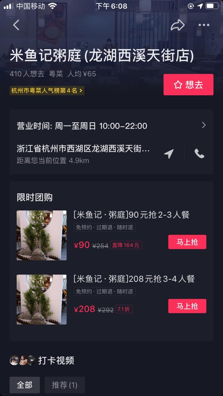 店长也了解过抖音团购的规则,“入驻是免费的,技术服务费也不高,但是推广成本很贵”。这样一家装修或餐品风格差异化不明显,也没什么内容生产力的小店,不大会选择抖音。
