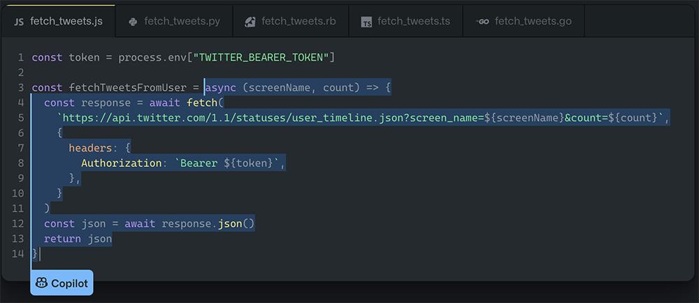 ▲GitHub Copilot自动补全导入推文代码