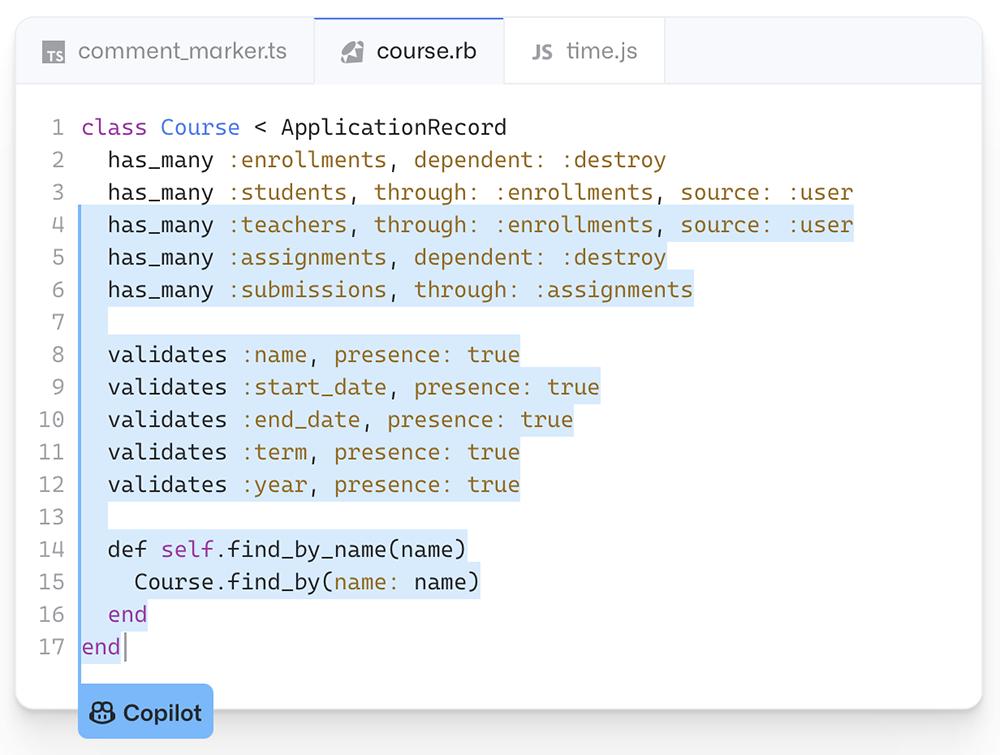 GitHub Copilot还非常适合快速生成模板和重复的代码模式,给它提供几个示例,它就能自动生成余下的重复模式代码。