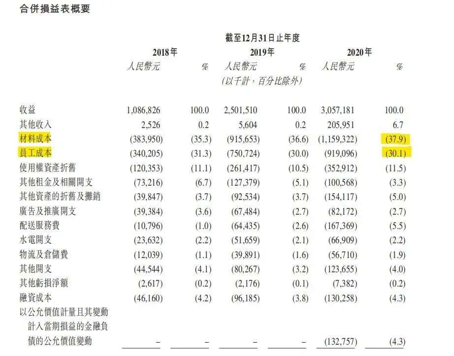 所以,在选材上强调品质的新茶饮,比传统连锁茶饮价格高一些是有理由的。据奈雪招股书,材料成本和员工成本是奈雪的茶成本大头,2020 年两者占比总和为 68%,其中材料成本占到 37.9%。