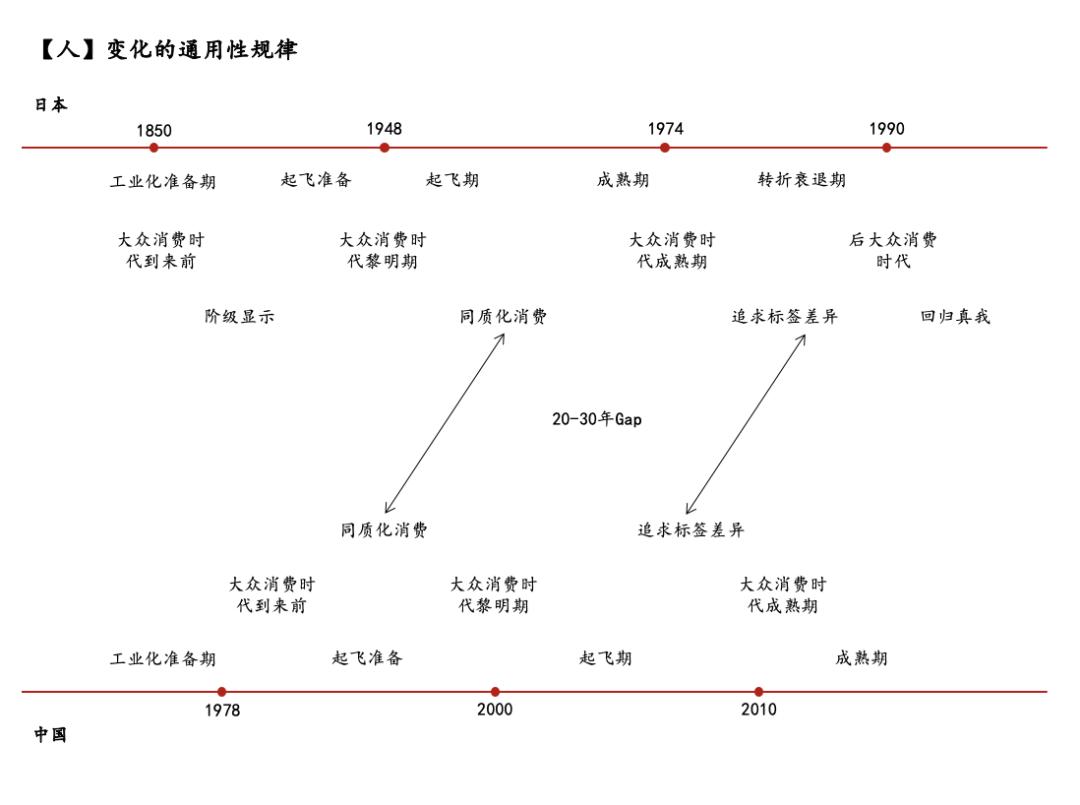 日本所经历的阶段对应到中国的话,大概是从1978年开始进入工业化起飞准备期,到2000年向起飞阶段过渡,以及在08年金融危机后,进入大众消费时代。