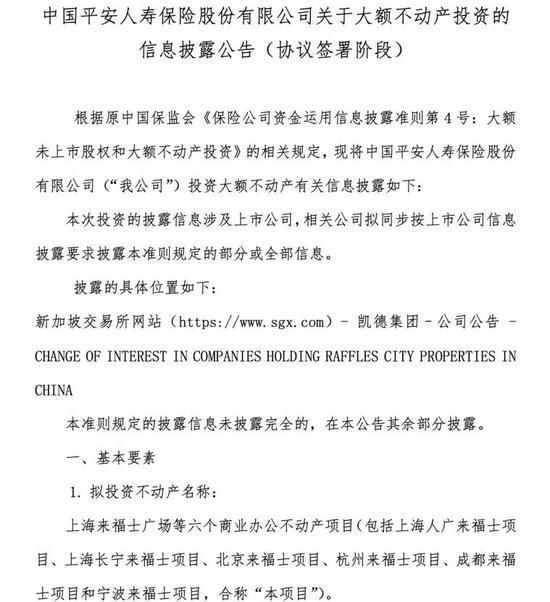 1、中国平安豪掷330亿,收购凯德集团旗下资产,什么信号?(券商财经)