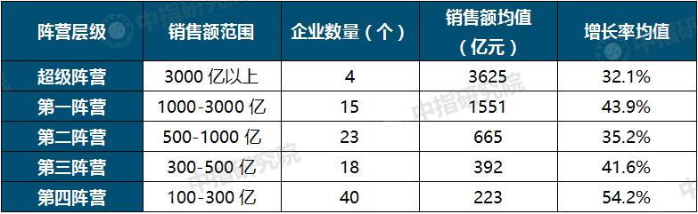 表:2021年1-6月房企各阵营数量及销售额均值情况