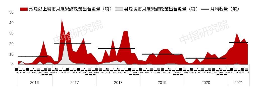 地方政府因城施策,高频加码楼市调控,据不完全统计,2021年上半年月均出台房地产紧缩政策明显超过去两年月均水平,30余热点城市出台调控新政,累计调控次数超百次,调控更加频繁,调控手段更加全面,严查资金违规流入房地产市场、建立房地联动机制、增强二手房市场调控力度等内容均有涉及。
