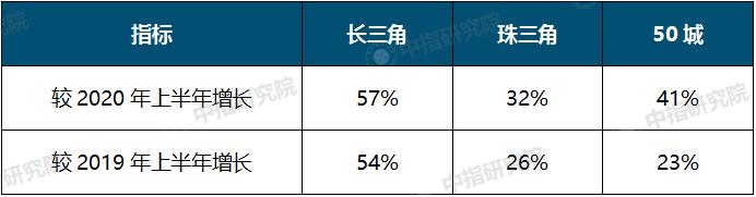 另外,上半年高价地成交数量大幅增加且主要集中在长三角区域。据统计,2021年上半年全国共成交高价地超300宗,较2020年同期大幅增长;其中,长三角区域成交高价地占全国比例达到66%,杭州、南京、金华高价地成交宗数居前。