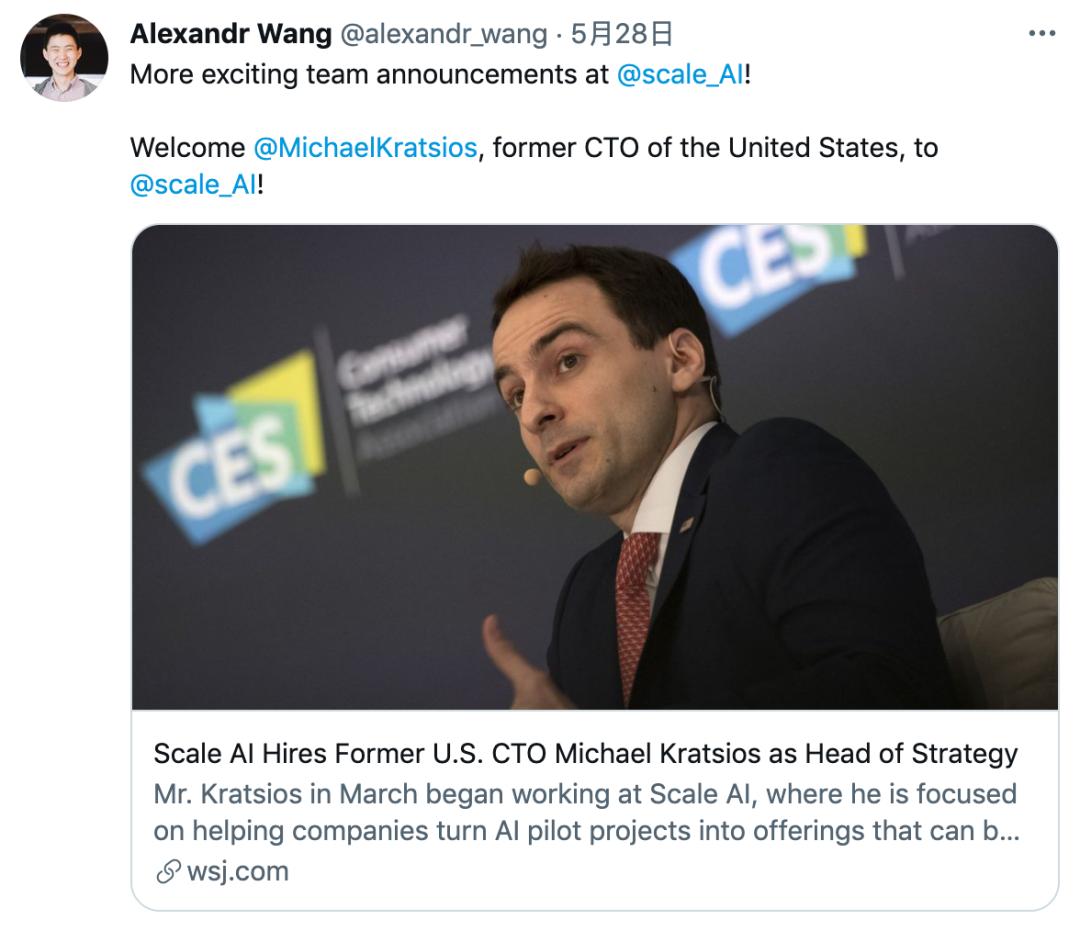 Scale 的 CTO 就是从 Amazon 挖过来的AI专家,而战略负责人则是前美国国家首席技术官。