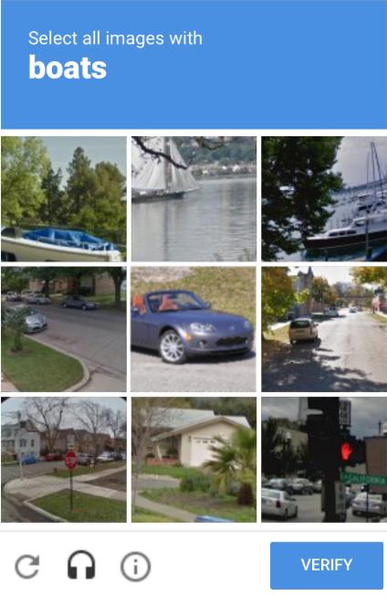 这个过程其实大家都很熟悉,我们经常在登陆验证的时候被要求指出某些物体,比如下图要求指出所有带有船的图片,即标注这些图片: