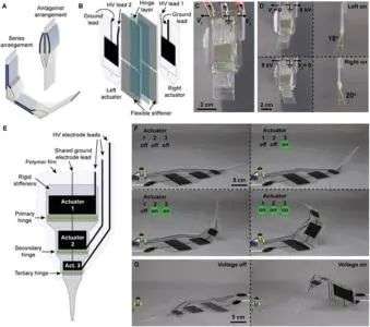 SES关键速度快,测量出的滚转频率为24赫兹,激活时间低至12毫秒。与依赖于系统内外热量缓慢扩散的热驱动系统相比,SES关节所采用的静电机制既快速又可扩展到大型阵列。