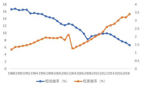 图六:中国结婚率与离婚率