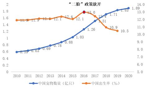图四:中国宠物数量与出生率负相关
