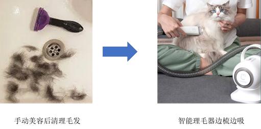 宠物刷牙的方式,由硅胶指套过渡到声波牙刷,节省了人力的同时大幅提高了清洁效果;洗脚的方式,由传统的抹布擦洗,过渡到智能洗脚杯,该产品能够快速、彻底地清洁宠物脚部的灰尘、砂砾等杂物;传统的烘干由人工使用吹水机进行,还存在宠物抗拒、逃窜等痛点,目前市面上已推出全自动化的宠物烘干机,能够持续、温和地进行宠物烘干,彻底解放双手。宠物除毛的方式,则由传统的梳子、扫把畚斗组合,过渡到边梳边吸的智能理毛器,该产品由宠物清洁专用品牌“毛妈妈”研发,首次于小米众筹上架,售价399元,可以在梳剪毛发的同时将毛发吸入尘盒,极大程度地方便了养宠人士。