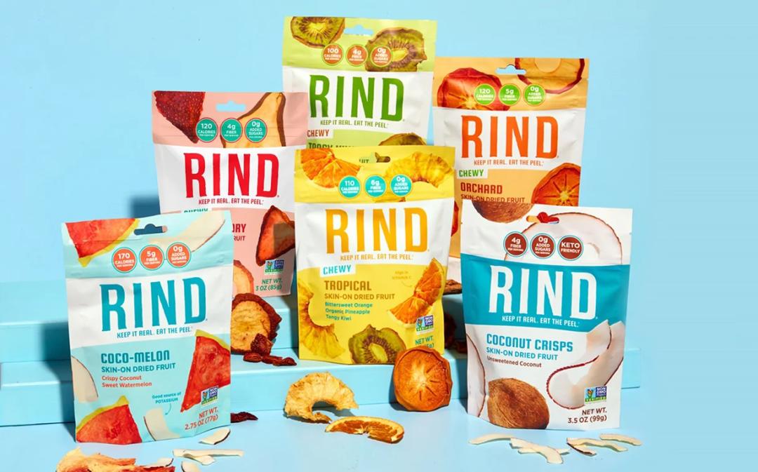 Rind成立于2018年,生产“带皮干果”,可以最大限度地提供营养并最大限度地减少食物浪费。该品牌的产品组合包括椰子脆片、椰子瓜、稻草梨和奇异果等多个水果零食品种,不到两年时间,该品牌在2020年收入增长了五倍,并随着其零售业务扩展到3,000多个地点,预计今年的销售额将增长两倍以上。