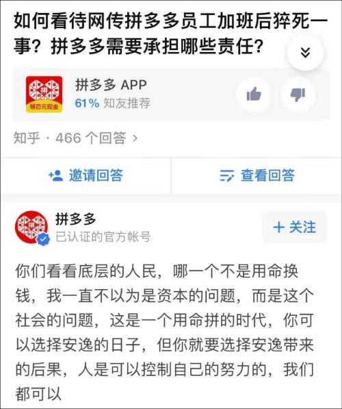 拼多多新入职员工猝死事件,在上半年引发了“打工人”们对于是否要加班、是否要参与内卷等多个问题的探讨,更是引发了全网对于拼多多挑战人类极限的加班时间的讨伐。