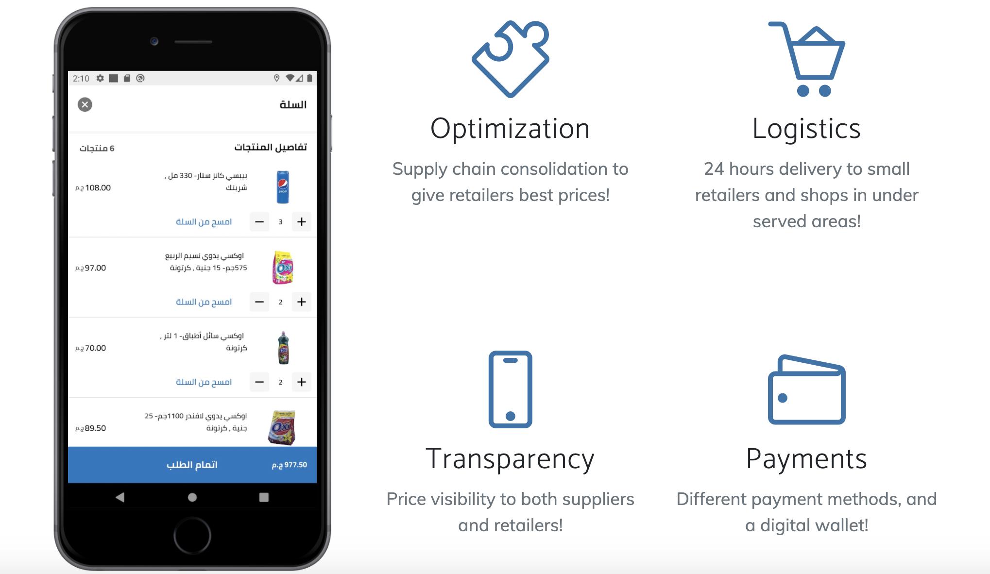 El-Megharbel表示,杂货零售占埃及GDP很大一部分,超过40万家个体店出售全国90%的零售杂货,但供应端与用户端却常常不匹配,一方面中小商家难以获得货源,而另一方面,供应端也不得不因为无法预测市场供需承担亏损。El-Megharbel则认为,用技术优化供应链可以解决这一问题。
