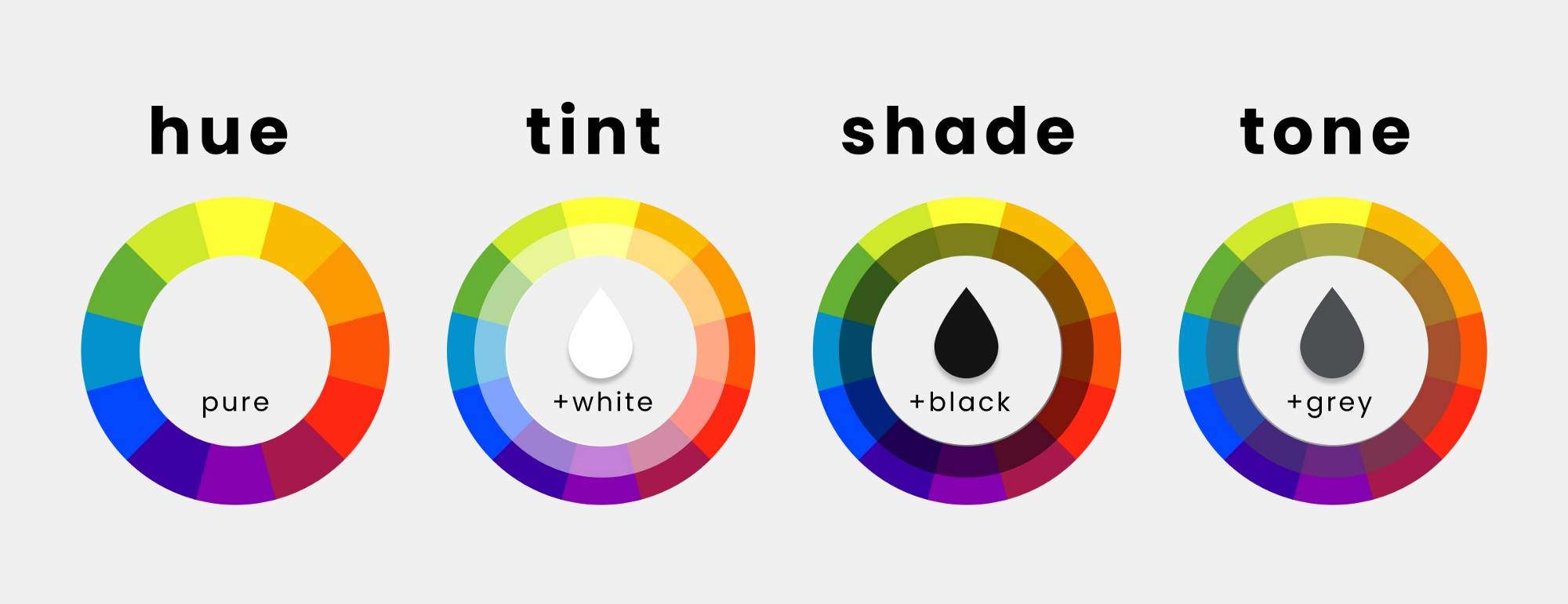 试试这些:色相(Hue)、暗调(Shade)、明调(Tint)及色调(Tone)