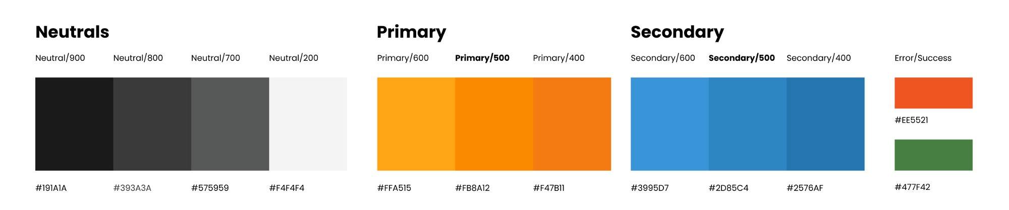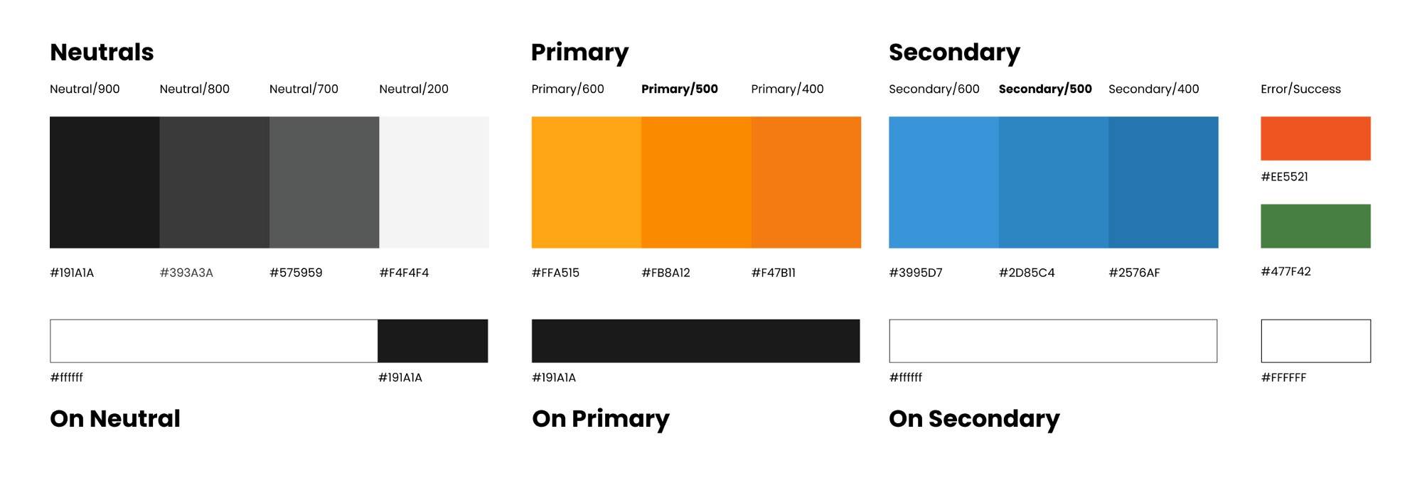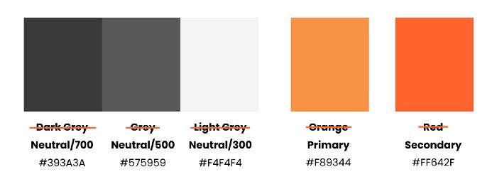 用什么名称并不重要。只需要具备描述性和一致性即可,比方说背景色、灰色等可以称为中性色。然后你会有一个原色和一个一次色,我的一次色通常是我用来突出显示的颜色。